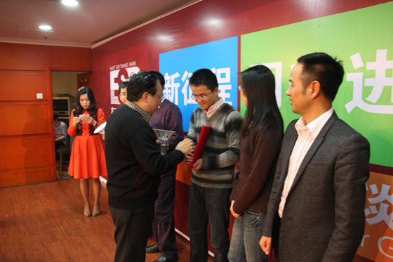 (记者三工报道)2013年1月16日下午,东部软件园“新征程,同奋进,共成长”企业家座谈会隆重举行。杭州市副市长徐文光应邀出席,向园区的企业家们致以美好的祝愿。宋小春董事长为获得荣誉奖项的园区企业颁奖,并送上“创业创新成功地,顺风顺水幸福园”的新年祝福。